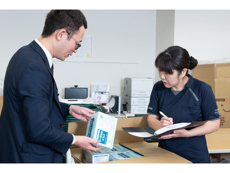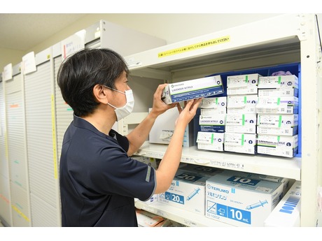 医療材料(ガーゼ、包帯、注射器等)を取り扱う病院の倉庫内の裏方スタッフです。